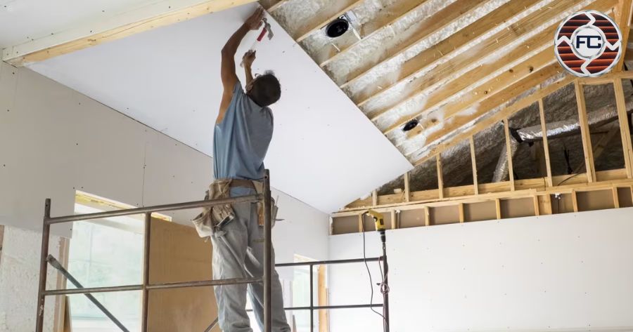 For ceiling panels, lift them above your head. Use a drywall lift or get help. The ceiling seams should land on the framing. Use thicker drywall for the ceiling if the span between joists is large. Once the ceiling panels are in place, drive screws into each joist. Space the screws about eight inches apart. This keeps the ceiling strong. Continue until the ceiling is fully covered. Check for any loose areas by tapping lightly. A solid tap should not feel spongy. If it does, add a few more screws.